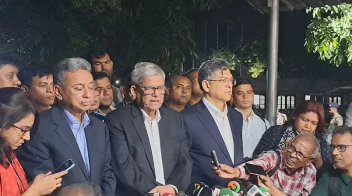 এর আগে সন্ধ্যা ৬টায় প্রধান উপদেষ্টা অধ্যাপক মুহাম্মদ ইউনূসের সঙ্গে তার বাসভবন রাষ্ট্রীয় অতিথি ভবন যমুনায় বৈঠক করেন মির্জা ফখরুল ইসলাম আলমগীরের নেতৃত্বে তিন সদস্যের প্রতিনিধি দল। প্রতিনিধি দলের অন্য সদস্যরা হলেন- আমীর খসরু মাহমুদ চৌধুরী ও সালাহ উদ্দিন আহমদ। রাত ৭টা ১১ মিনিটে তারা যমুনা থেকে বেরিয়ে আসেন।